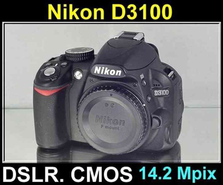 D3100 je nástupcem oblíbeného modelu Nikon D3000. Nový Nikon D3100 nabízí 11 bodový autofokus s 3D sledováním objektu, 7.5cm LCD displej, CCD snímač o rozlišení 14.2MPix, čištění obrazového snímače, natáčení Full HD videa, režim Živého náhledu, dobrou ergonomii a celou řadu dalších funkcí.