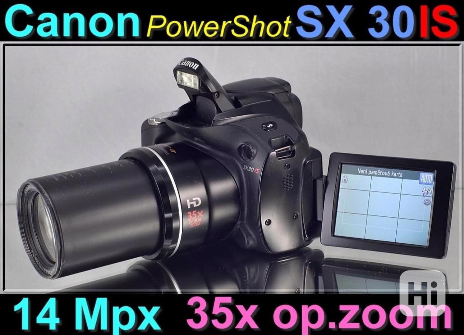 Výkonný digitální fotoaparát s 24mm ultraširokoúhlým objektivem s 35x optickým zoomem. PowerShot SX30 IS dovoluje plně manuální ovládání, záznam videa v HD kvalitě a poskytuje řadu kreativních a automatických fotografických režimů. Rozlišení 14 Mpx, nastavitelný LCD displej s úhlopříčkou 2,7".