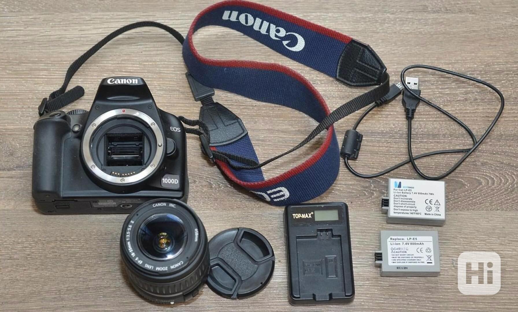 Canon EOS 1000D je začátečnická zrcadlovka nabízející vysokou výkonnost za velmi malou cenu. 1000D je koncepcí velmi levné, ale výkonné a uživatelsky příjemné digitální zrcadlovky pro každodenní fotografování.