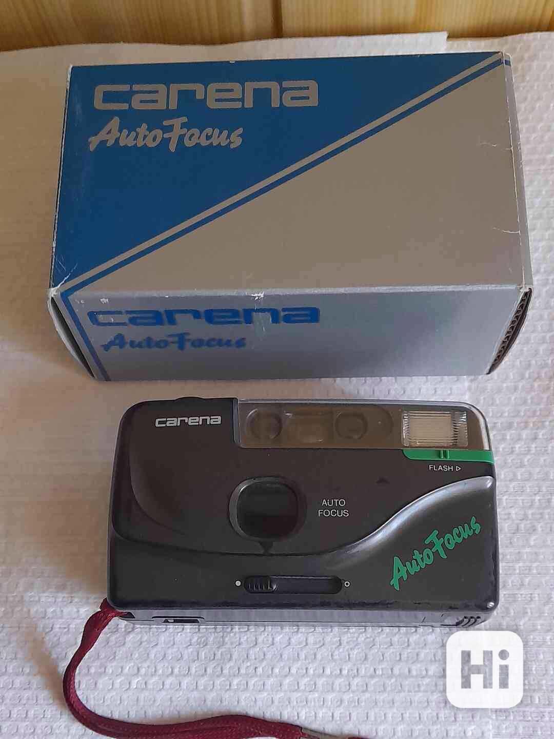 Nabízím velmi zachovalý fotoaparát CARENA, na kinofilm, 35mm, s bleskem, autofocus, původní balení, cena 300 Kč + zásilkovna.