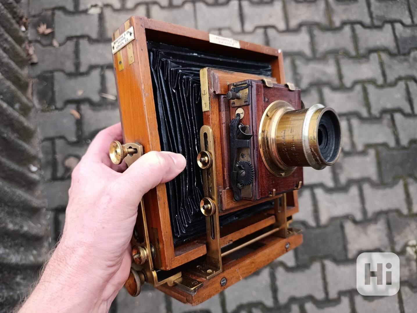 Nabízím mimořádně vzácný originální dřevěný fotoaparát LANCASTER & SON, vyrobený v Anglii přibližně kolem roku 1895. Dřevo i kov v pěkném stavu, všechny štítky, poutka je na jedné straně utřžené,da se nasadit ale prostě nedrží.