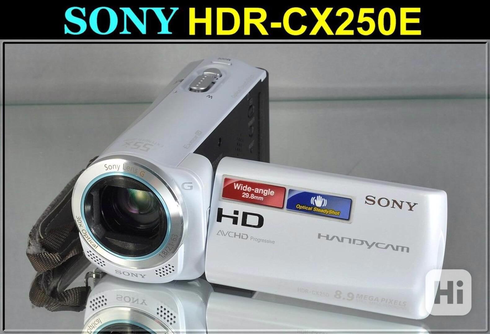 Snadné snímání ve Full HD kvalitě pomocí videokamery Sony HDR-CX250. Je lehká, snadno se přenáší a nabitá snadno ovladatelnými funkcemi pro snímání, sdílení a potěšení z ostrého Full HD videa a fotografií. K dispozici 30× optický zoom, displej o velikosti 3", funkce iAUTO. Fotografie umí v kvalitě 8,9 Mpix.