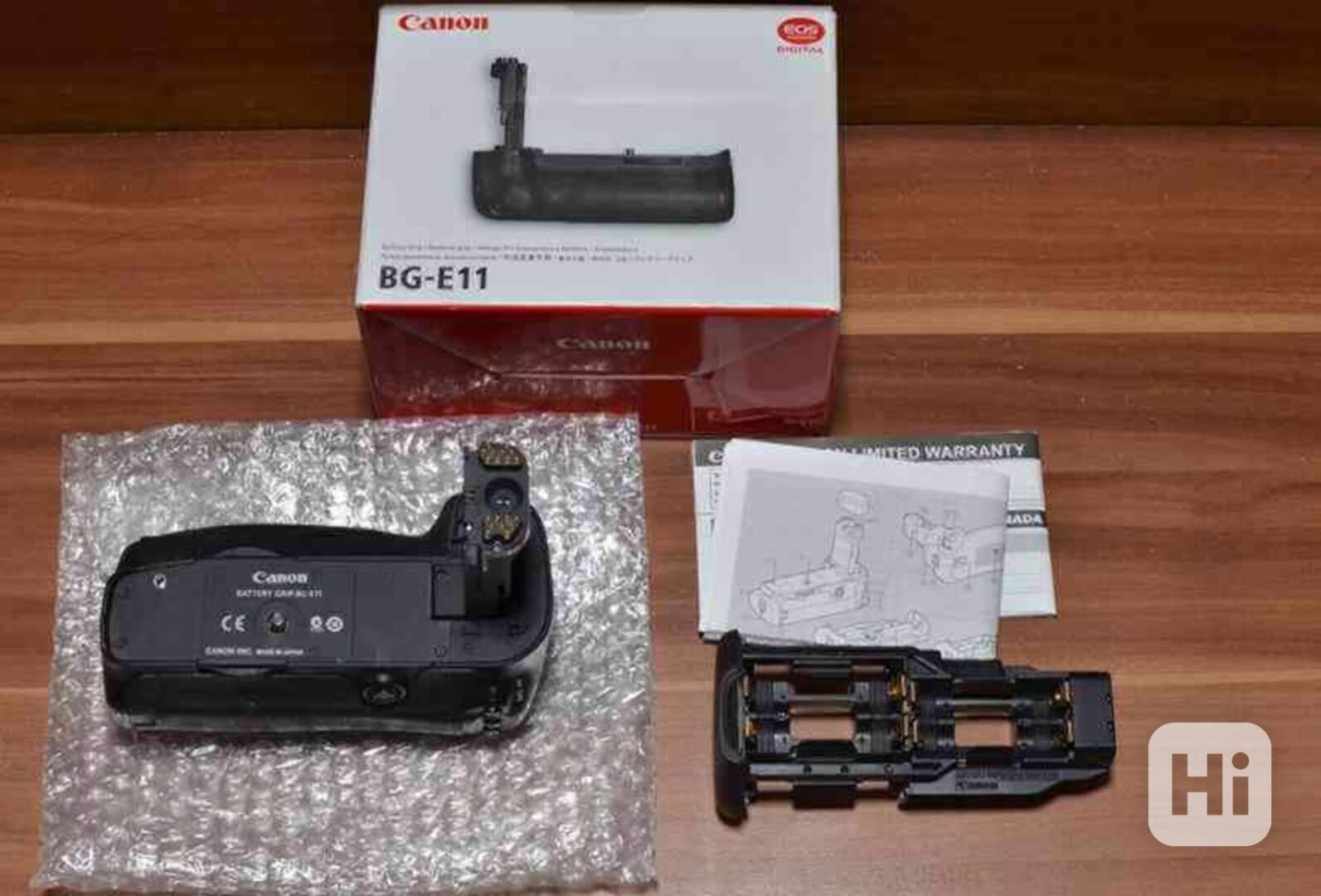 Součástí aukce je: grip Canon BG-E11, Držák pro akumulátor LP-E6, Držák na 6 AA baterií .